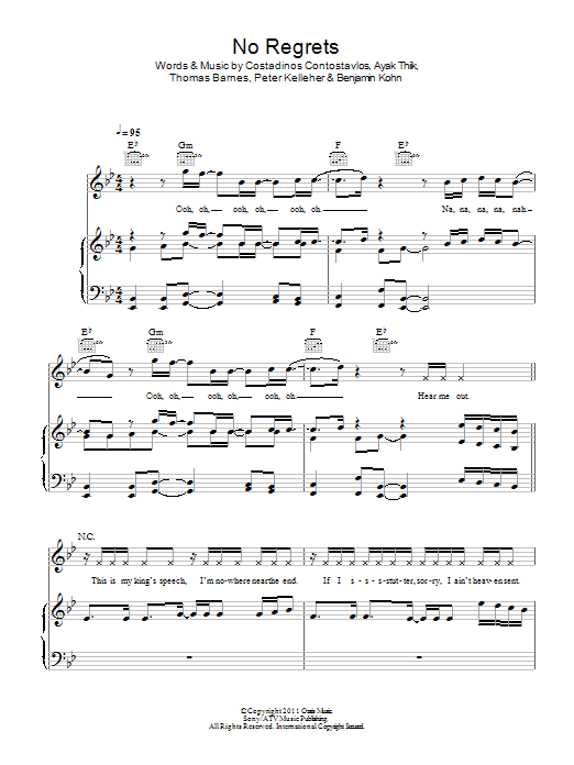 Download or print Dappy No Regrets sheet music, chords and digital score arranged for Piano, Vocal & Guitar Chords. This Pop score includes 11 page(s).