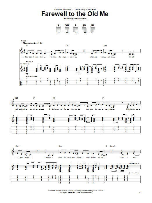 Download or print Dar Williams Farewell To The Old Me sheet music, chords and digital score arranged for Guitar Tab. This Folk score includes 5 page(s).