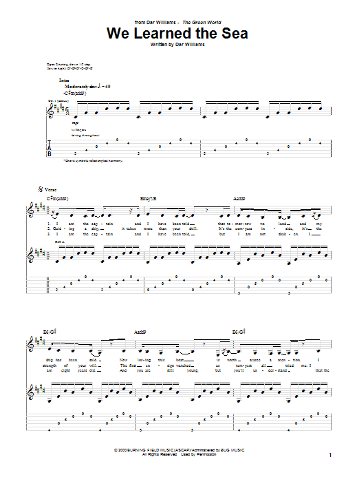 Download or print Dar Williams We Learned The Sea sheet music, chords and digital score arranged for Guitar Tab. This Folk score includes 3 page(s).