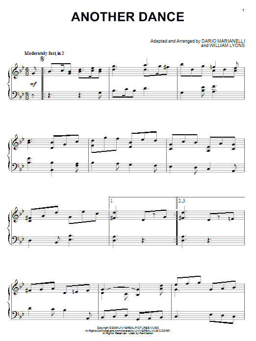Download or print Dario Marianelli Another Dance (from Pride And Prejudice) sheet music, chords and digital score arranged for Piano Solo. This Film/TV score includes 2 page(s).