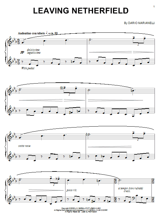 Download or print Dario Marianelli Leaving Netherfield (from Pride And Prejudice) sheet music, chords and digital score arranged for Piano Chords/Lyrics. This Film/TV score includes 2 page(s).