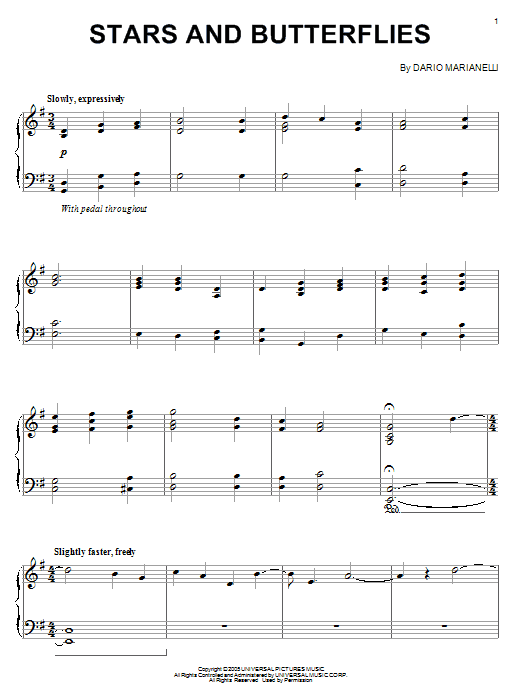 Download or print Dario Marianelli Stars And Butterflies (from Pride And Prejudice) sheet music, chords and digital score arranged for Easy Piano. This Film/TV score includes 2 page(s).
