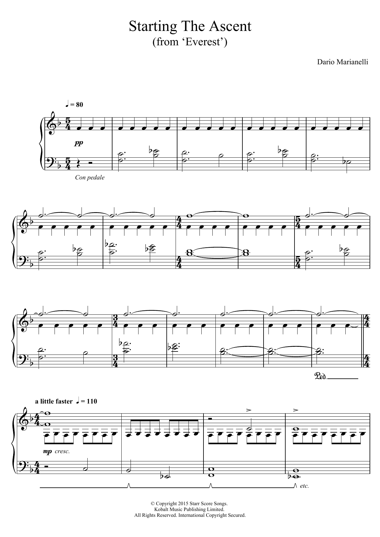 Download or print Dario Marianelli Starting The Ascent (From 'Everest') sheet music, chords and digital score arranged for Piano Solo. This Classical score includes 4 page(s).