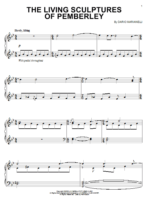 Download or print Dario Marianelli The Living Sculptures Of Pemberley (from Pride And Prejudice) sheet music, chords and digital score arranged for Piano Solo. This Film/TV score includes 4 page(s).