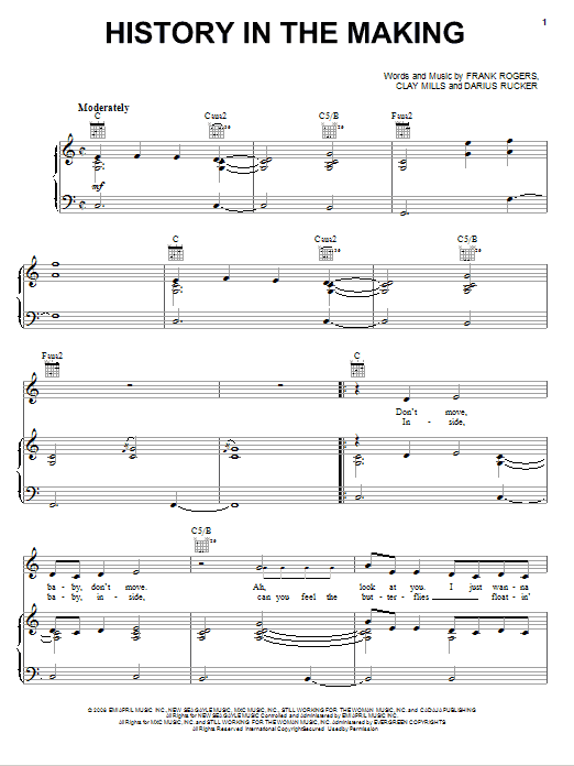 Download or print Darius Rucker History In The Making sheet music, chords and digital score arranged for Piano, Vocal & Guitar Chords (Right-Hand Melody). This Country score includes 7 page(s).