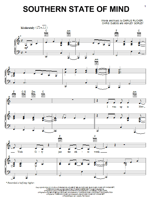 Download or print Darius Rucker Southern State Of Mind sheet music, chords and digital score arranged for Piano, Vocal & Guitar Chords (Right-Hand Melody). This Country score includes 7 page(s).
