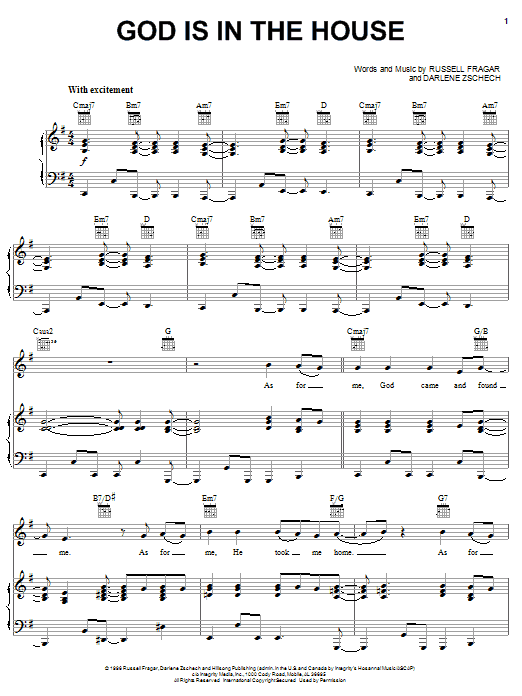 Download or print Darlene Zschech God Is In The House sheet music, chords and digital score arranged for Piano, Vocal & Guitar Chords (Right-Hand Melody). This Christian score includes 6 page(s).