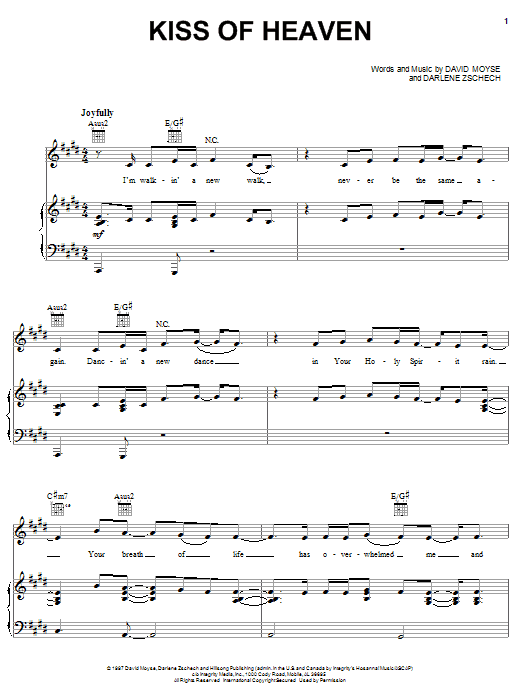 Download or print Darlene Zschech Kiss Of Heaven sheet music, chords and digital score arranged for Piano, Vocal & Guitar Chords (Right-Hand Melody). This Christian score includes 8 page(s).