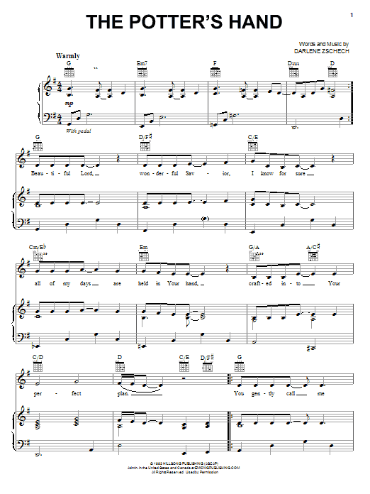 Download or print Darlene Zschech The Potter's Hand sheet music, chords and digital score arranged for Easy Piano. This Pop score includes 5 page(s).