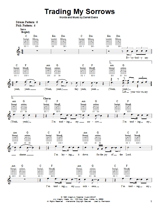 Download or print Darrell Evans Trading My Sorrows sheet music, chords and digital score arranged for Easy Piano. This Christian score includes 4 page(s).