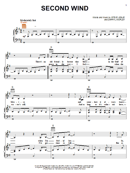 Download or print Darryl Worley Second Wind sheet music, chords and digital score arranged for Piano, Vocal & Guitar Chords (Right-Hand Melody). This Country score includes 5 page(s).