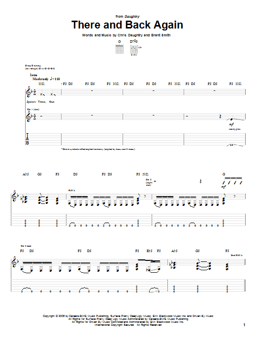 Download or print Daughtry There And Back Again sheet music, chords and digital score arranged for Piano, Vocal & Guitar Chords (Right-Hand Melody). This Pop score includes 7 page(s).