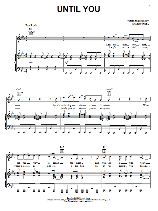 Download or print Dave Barnes Until You sheet music, chords and digital score arranged for Piano, Vocal & Guitar Chords (Right-Hand Melody). This Pop score includes 5 page(s).