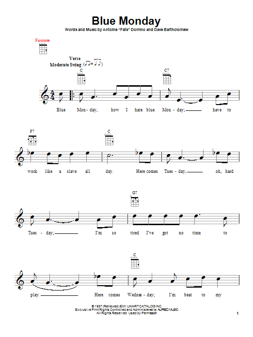 Download or print Dave Bartholomew Blue Monday sheet music, chords and digital score arranged for Easy Piano. This Pop score includes 3 page(s).