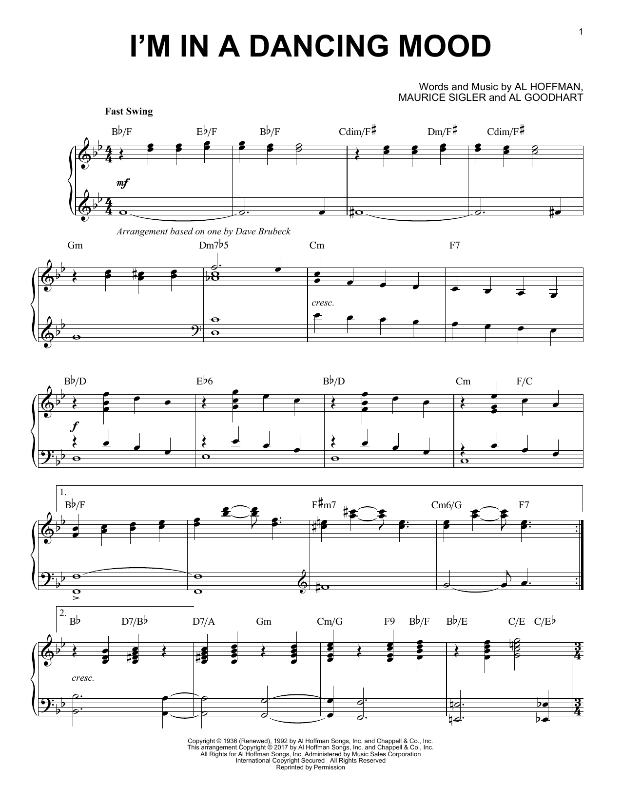 Download or print Dave Brubeck I'm In A Dancing Mood sheet music, chords and digital score arranged for Piano Solo. This Pop score includes 4 page(s).