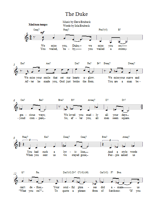 Download or print Dave Brubeck The Duke sheet music, chords and digital score arranged for Guitar Ensemble. This Jazz score includes 2 page(s).