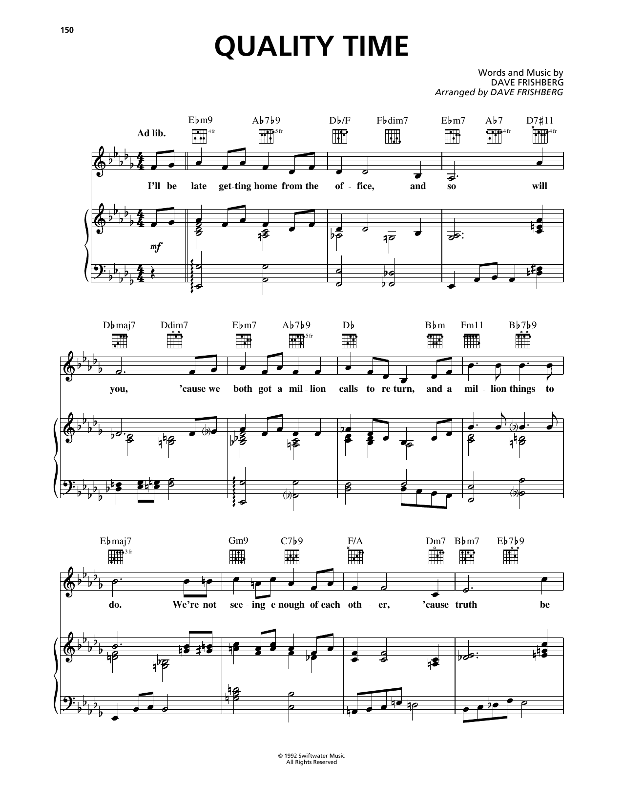 Download or print Dave Frishberg Quality Time sheet music, chords and digital score arranged for Piano, Vocal & Guitar Chords (Right-Hand Melody). This Jazz score includes 8 page(s).