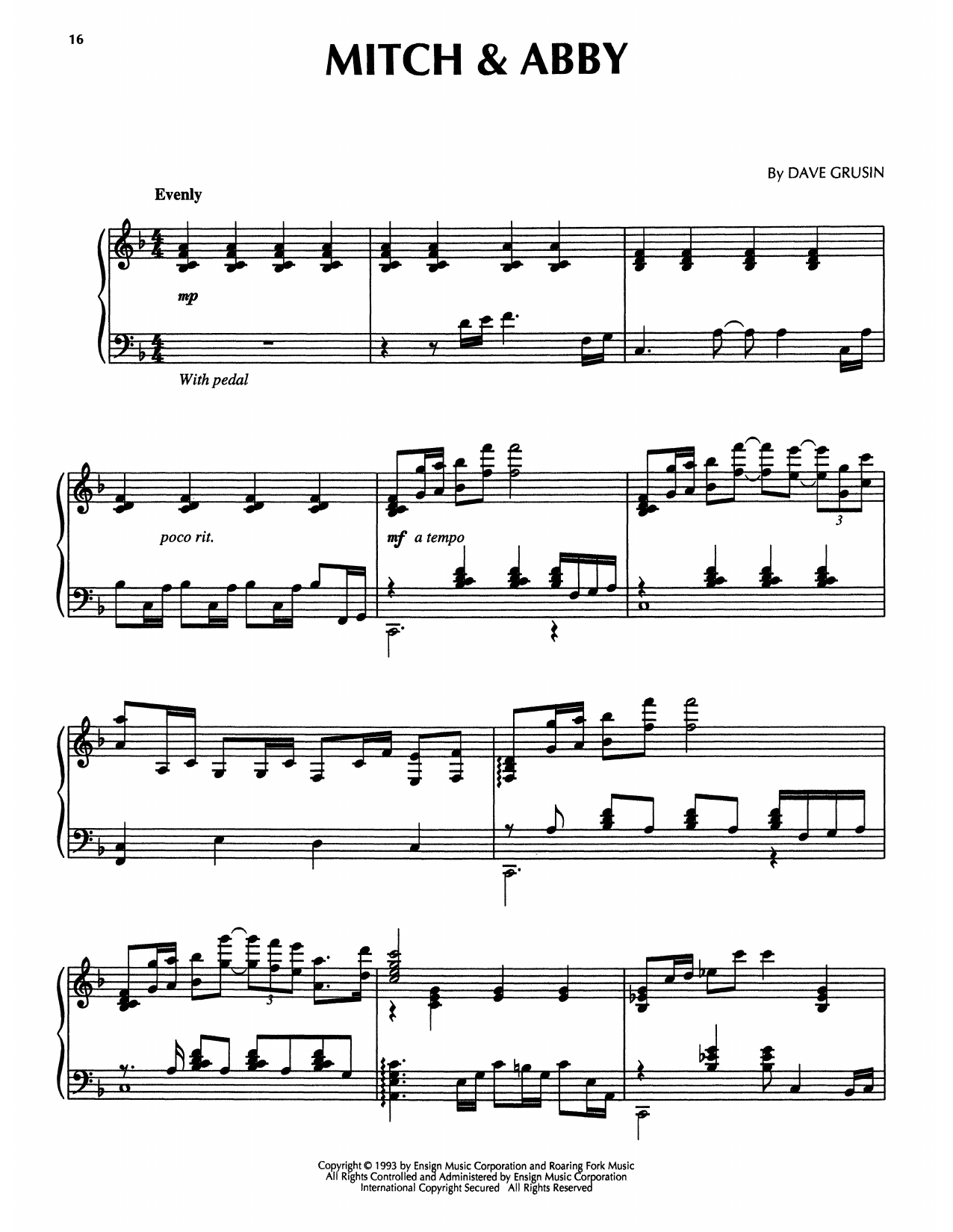 Download or print Dave Grusin Mitch & Abby (from The Firm) sheet music, chords and digital score arranged for Piano Solo. This Film/TV score includes 3 page(s).