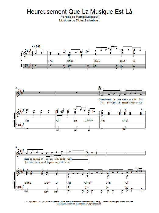 Download or print Dave Heureusement Que La Musique Est La sheet music, chords and digital score arranged for Piano & Vocal. This French score includes 3 page(s).