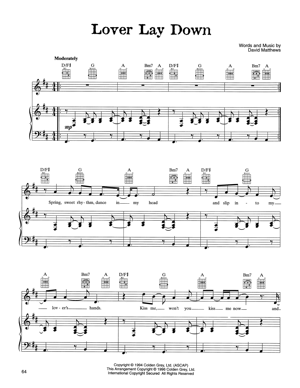 Download or print Dave Matthews Band Lover Lay Down sheet music, chords and digital score arranged for Guitar Tab. This Pop score includes 5 page(s).
