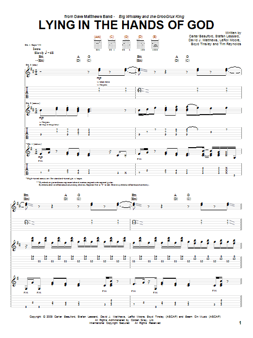 Download or print Dave Matthews Band Lying In The Hands Of God sheet music, chords and digital score arranged for Guitar Tab. This Pop score includes 16 page(s).