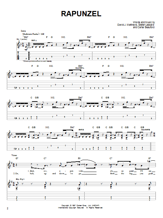 Download or print Dave Matthews Band Rapunzel sheet music, chords and digital score arranged for Guitar Tab. This Pop score includes 13 page(s).