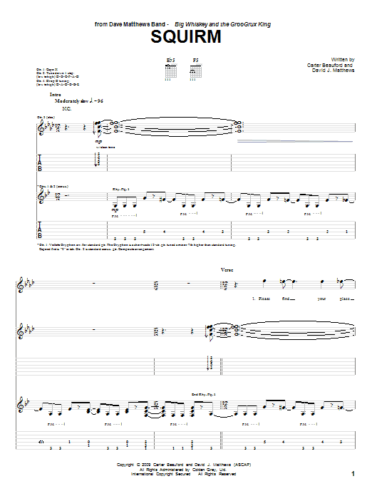 Download or print Dave Matthews Band Squirm sheet music, chords and digital score arranged for Guitar Tab. This Pop score includes 12 page(s).