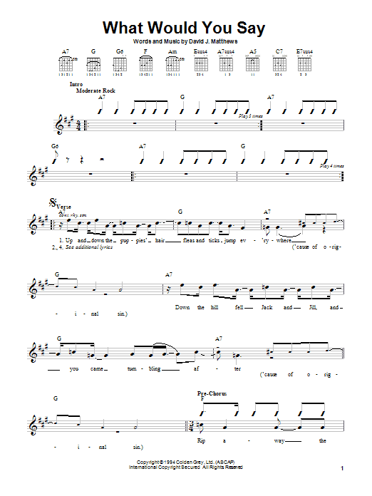 Download or print Dave Matthews Band What Would You Say sheet music, chords and digital score arranged for Guitar Tab. This Pop score includes 6 page(s).