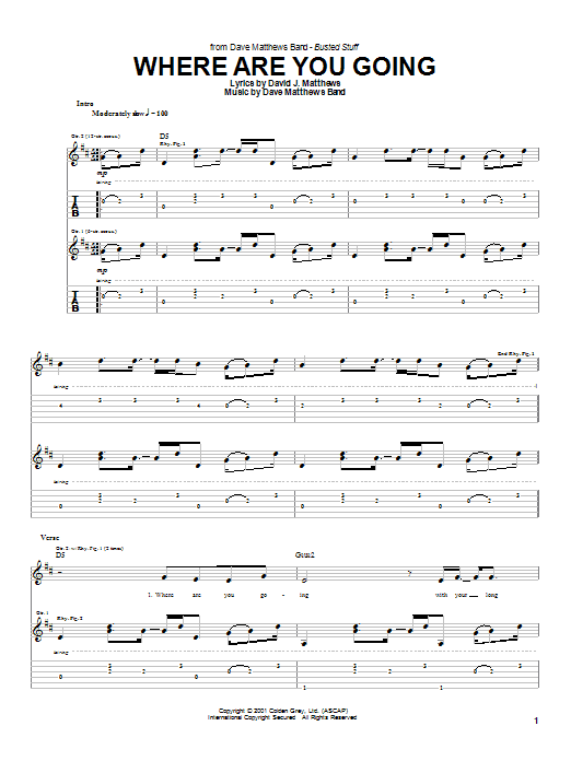 Download or print Dave Matthews Band Where Are You Going sheet music, chords and digital score arranged for Guitar Tab. This Pop score includes 6 page(s).