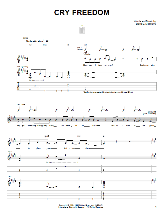 Download or print Dave Matthews & Tim Reynolds Cry Freedom sheet music, chords and digital score arranged for Guitar Tab. This Pop score includes 18 page(s).