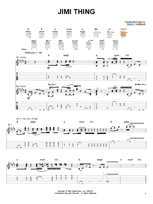 Download or print Dave Matthews & Tim Reynolds Jimi Thing sheet music, chords and digital score arranged for Guitar Tab. This Pop score includes 23 page(s).
