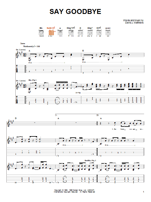 Download or print Dave Matthews & Tim Reynolds Say Goodbye sheet music, chords and digital score arranged for Guitar Tab. This Pop score includes 12 page(s).