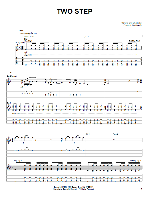 Download or print Dave Matthews & Tim Reynolds Two Step sheet music, chords and digital score arranged for Guitar Tab. This Pop score includes 12 page(s).