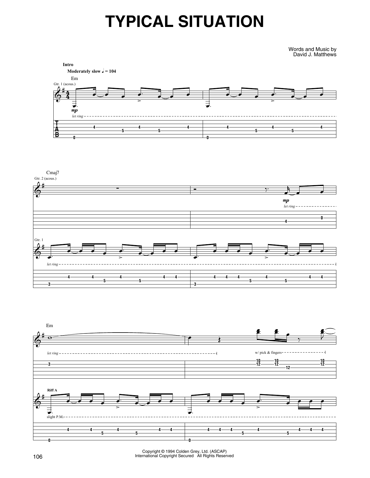 Download or print Dave Matthews & Tim Reynolds Typical Situation sheet music, chords and digital score arranged for Guitar Tab. This Pop score includes 16 page(s).