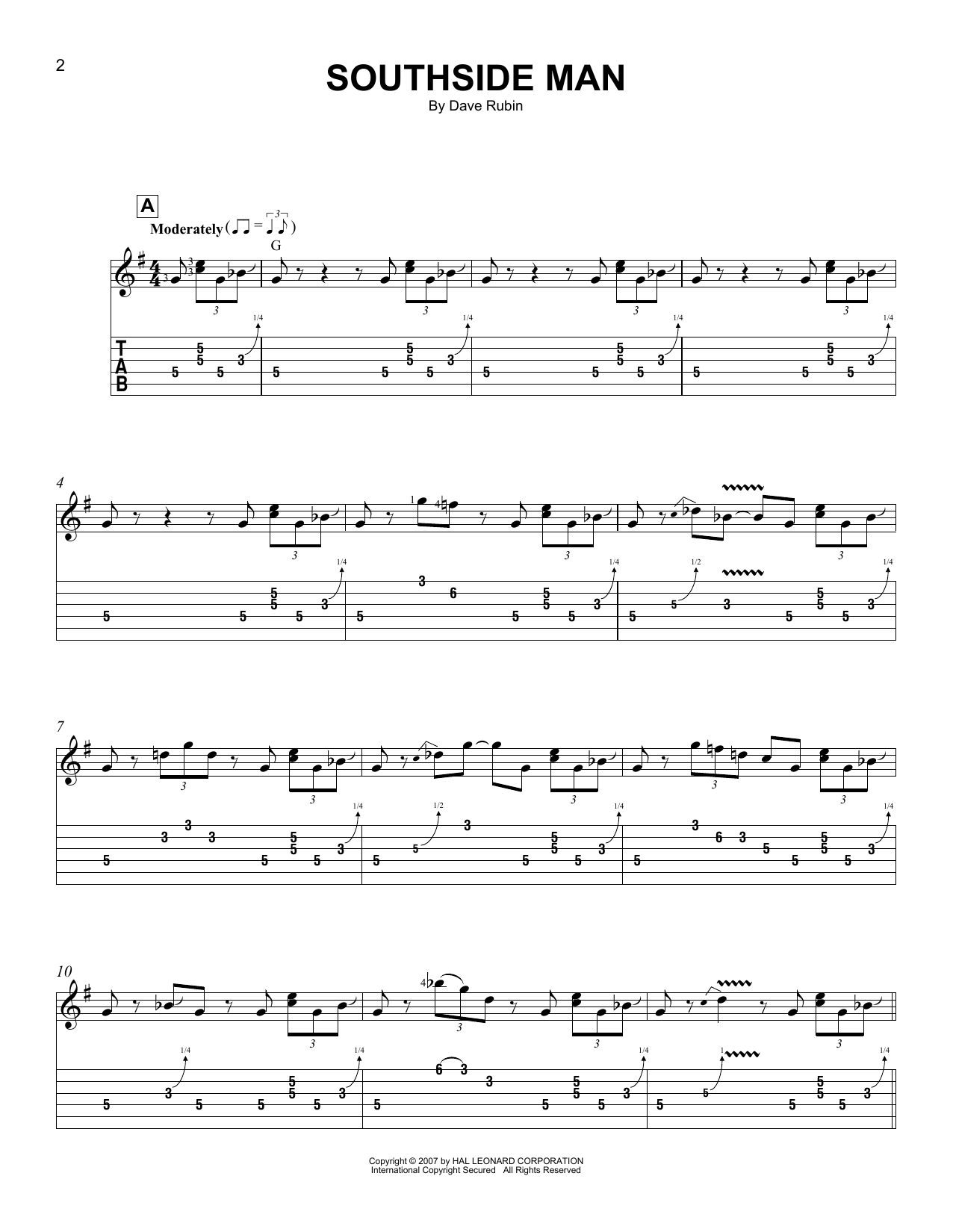 Download or print Dave Rubin Southside Man sheet music, chords and digital score arranged for Easy Guitar Tab. This Instructional score includes 4 page(s).