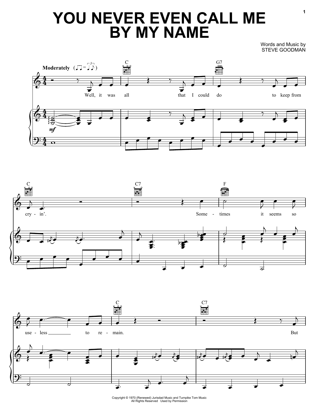 Quick facts You Never Even Call Me By My Name about digital sheet music