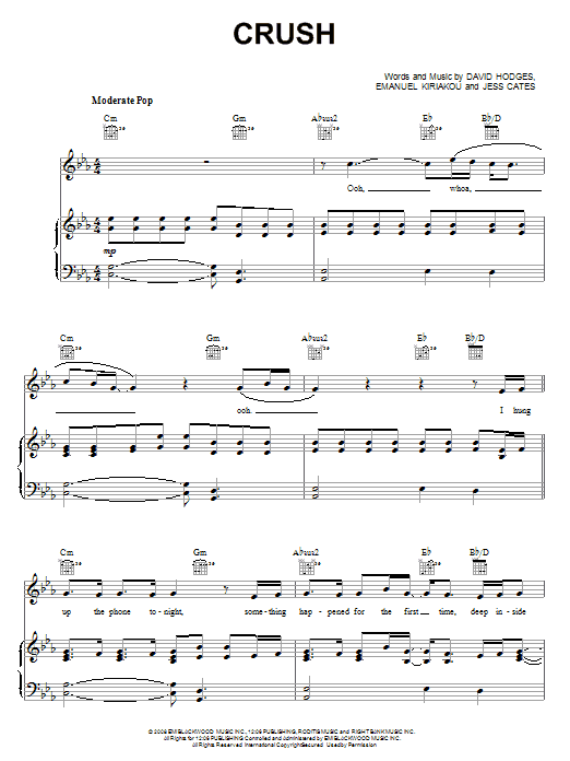 Download or print David Archuleta Crush sheet music, chords and digital score arranged for Piano, Vocal & Guitar Chords (Right-Hand Melody). This Film/TV score includes 7 page(s).