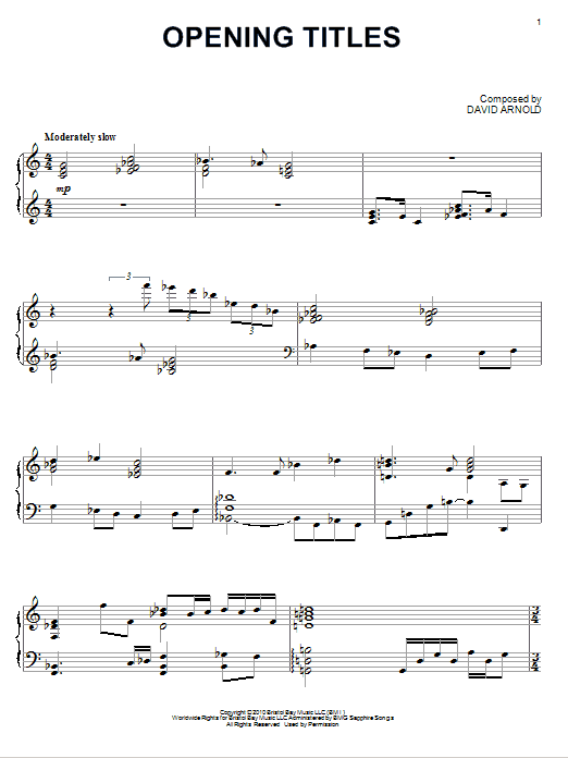 This composition is beautifuly arranged for Piano includes 2 page(s). It is performed by David Arnold. The style of the score is 'Pop'. Catalog SKU number of the notation is 80825.