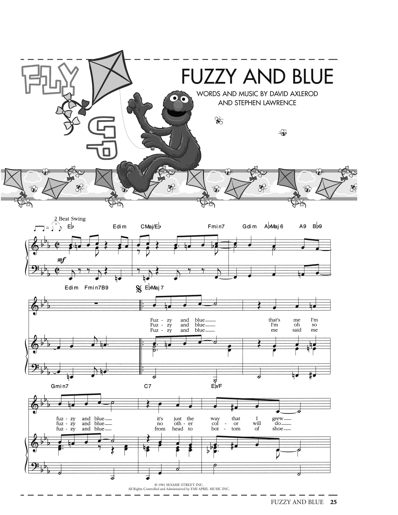 Download or print David Axlerod Fuzzy And Blue (from Sesame Street) sheet music, chords and digital score arranged for Piano, Vocal & Guitar Chords (Right-Hand Melody). This Children score includes 3 page(s).