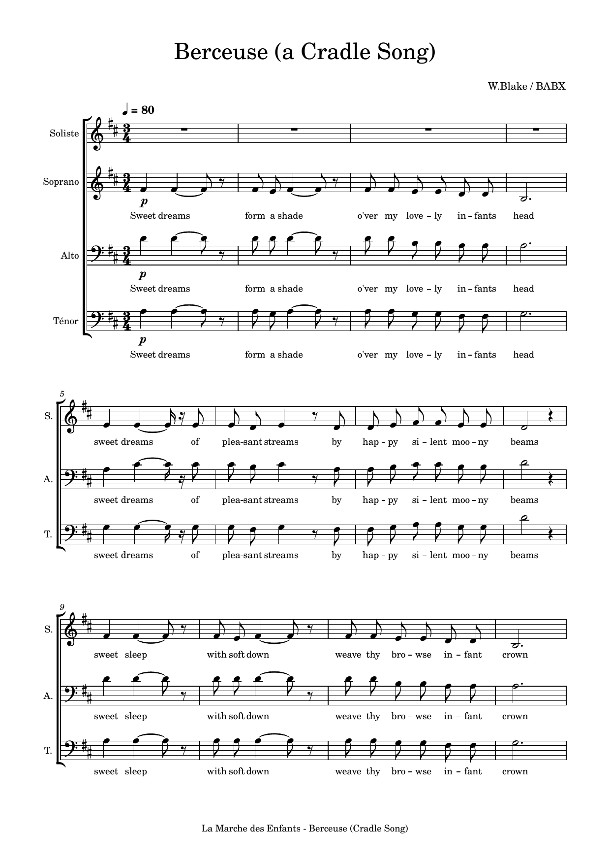 Download or print David Babin (Babx) Berceuse (A Cradle Song) sheet music, chords and digital score arranged for Choir. This Classical score includes 3 page(s).