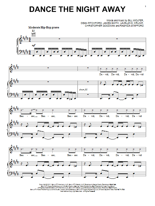 Download or print David Banner featuring Denim Dance The Night Away sheet music, chords and digital score arranged for Piano, Vocal & Guitar Chords (Right-Hand Melody). This Film/TV score includes 12 page(s).