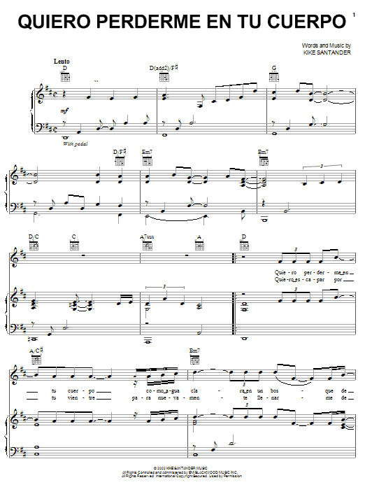 Download or print David Bisbal Quiero Perderme En Tu Cuerpo sheet music, chords and digital score arranged for Piano, Vocal & Guitar Chords (Right-Hand Melody). This Latin score includes 6 page(s).