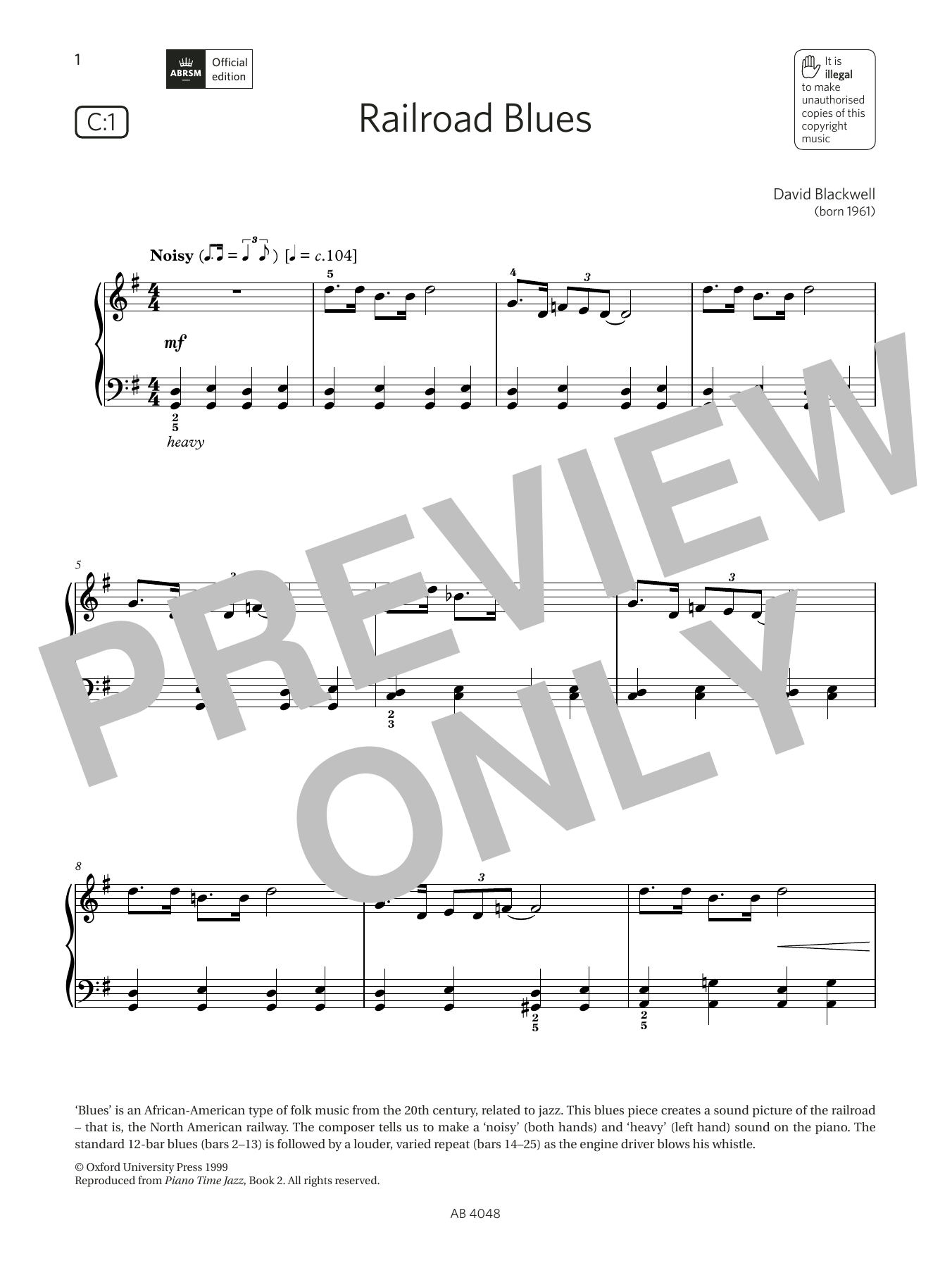 Quick facts Railroad Blues (Grade 2, list C1, from the ABRSM Piano Syllabus 2023 & 2024) about digital sheet music
