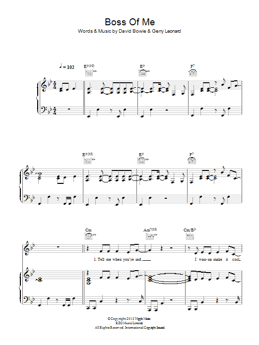 Download or print David Bowie Boss Of Me sheet music, chords and digital score arranged for Piano, Vocal & Guitar Chords. This Alternative score includes 7 page(s).