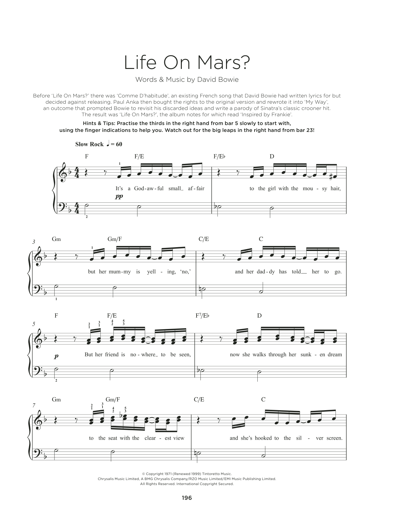 Download or print David Bowie Life On Mars sheet music, chords and digital score arranged for Really Easy Piano. This Pop score includes 3 page(s).
