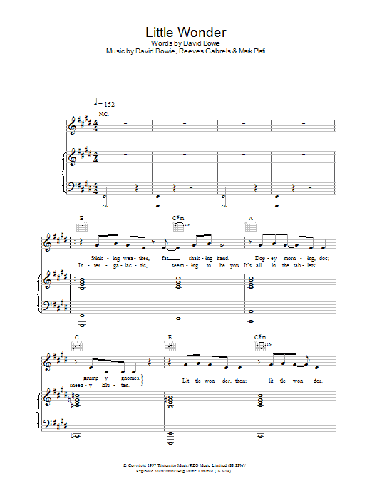 Download or print David Bowie Little Wonder sheet music, chords and digital score arranged for Guitar Chords/Lyrics. This Rock score includes 3 page(s).