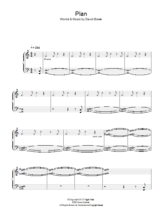 Download or print David Bowie Plan sheet music, chords and digital score arranged for Piano Solo. This Alternative score includes 2 page(s).