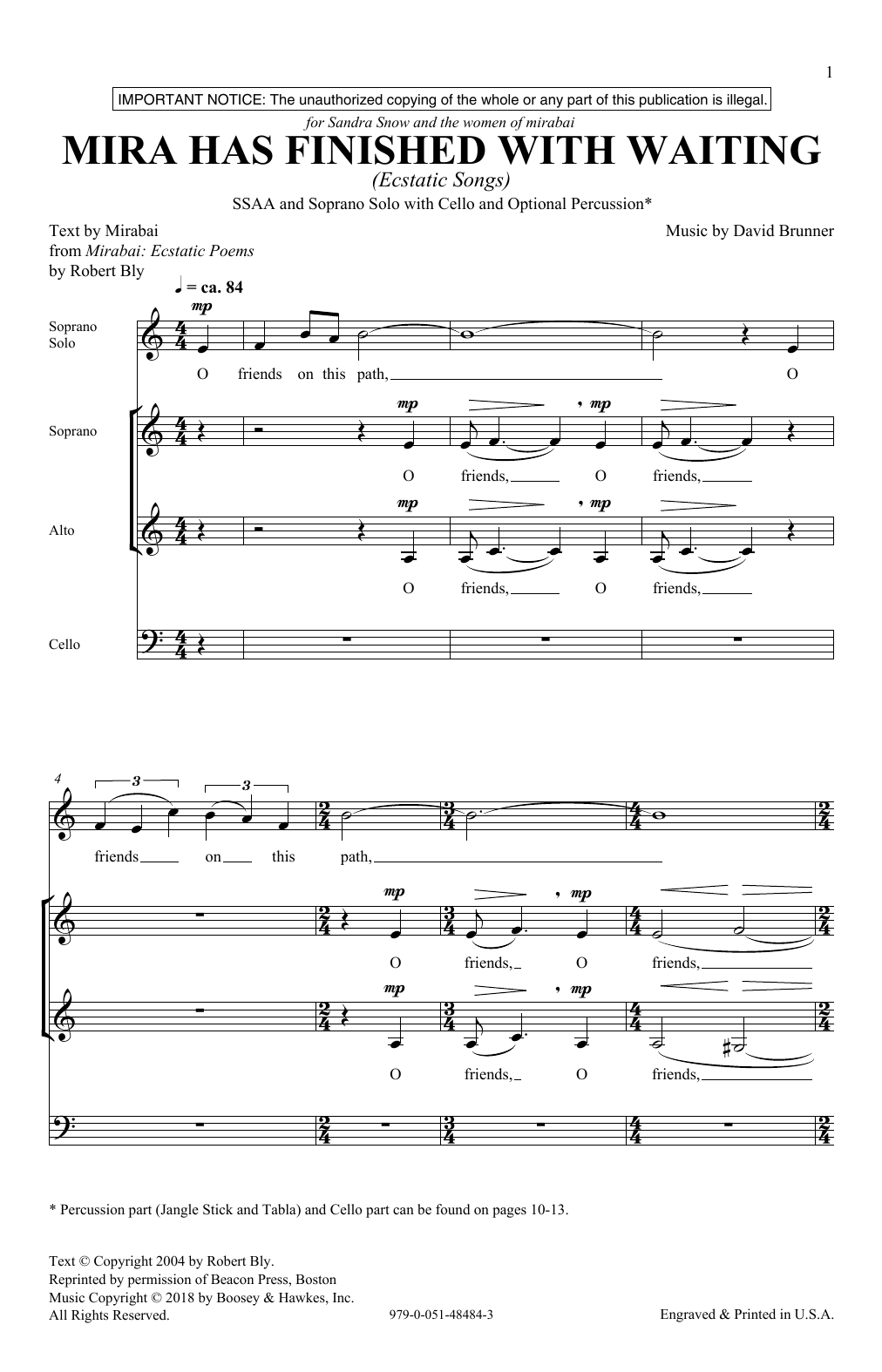 Download or print David Brunner Mira Has Finished With Waiting sheet music, chords and digital score arranged for SSA Choir. This Concert score includes 13 page(s).