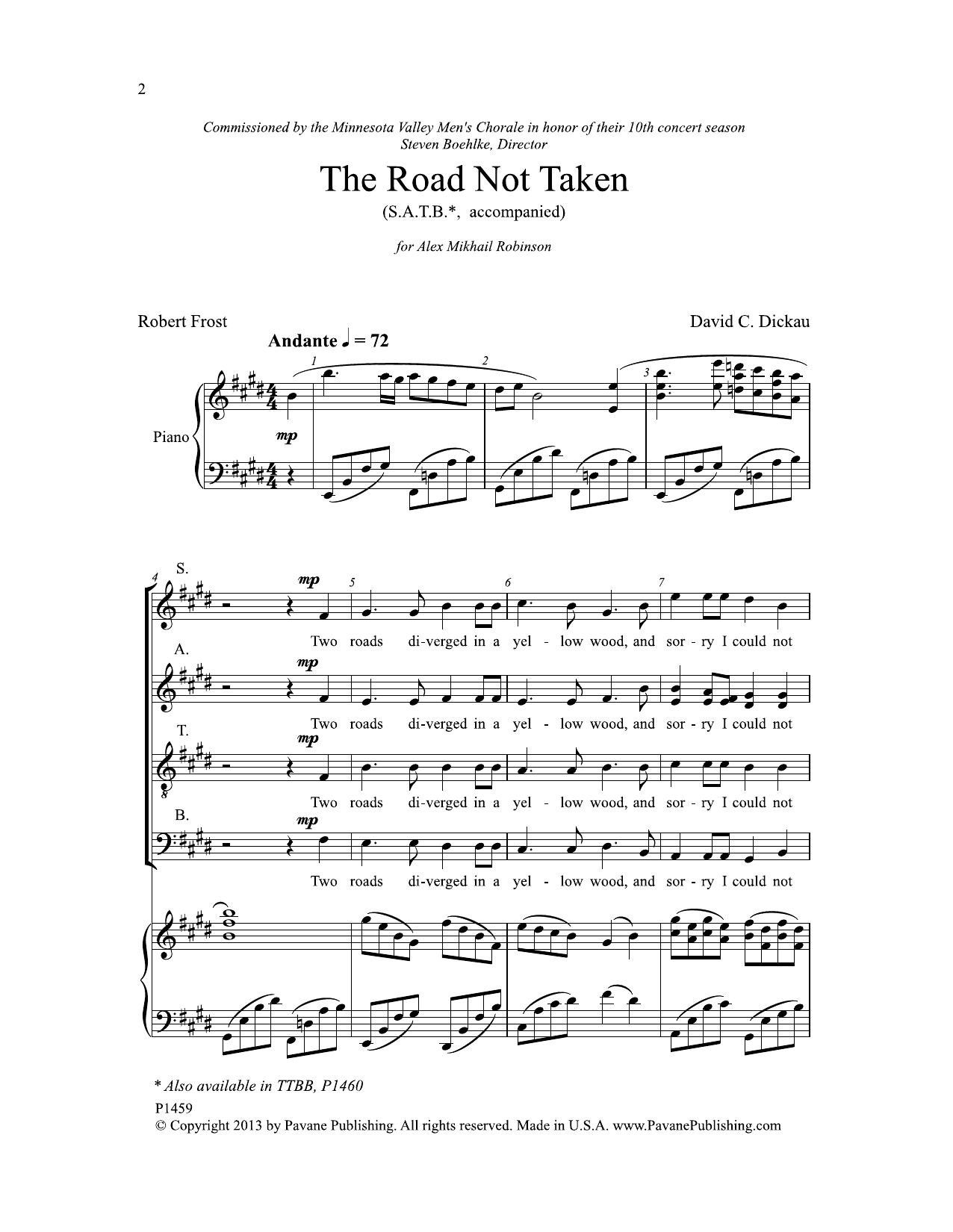 Download or print David C. Dickau The Road Not Taken sheet music, chords and digital score arranged for TTBB Choir. This Concert score includes 11 page(s).
