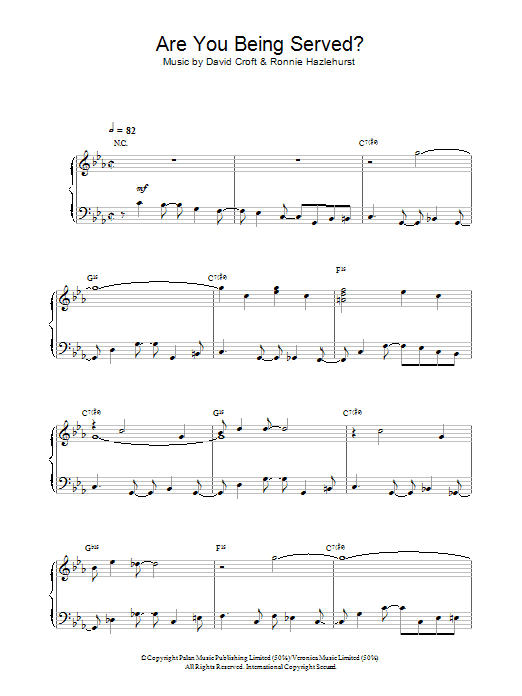 Download or print David Croft Are You Being Served? sheet music, chords and digital score arranged for Piano Solo. This Film/TV score includes 2 page(s).